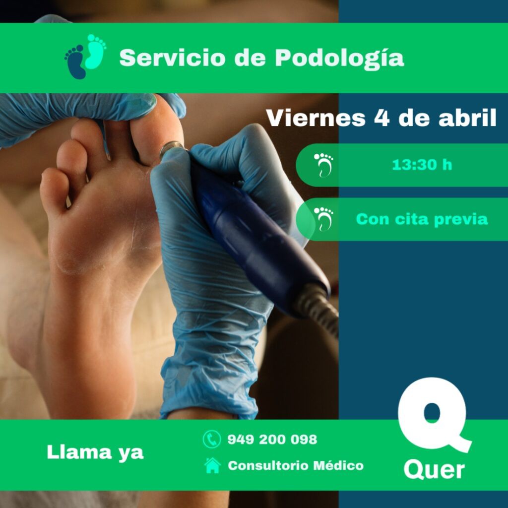 El Consultorio Médico ofrece su habitual servicio de podología, disponible con cita previa al 949 200 098.