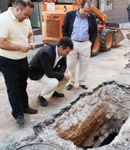 El primer edil ha comprobado la importancia que tienen los trabajos de canalización de las redes de saneamiento y de abastecimiento que se está realizando en este momento
