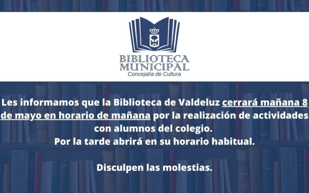 La Biblioteca de Valdeluz permanecerá cerrada mañana, 8 de mayo, durante la mañana debido a la realización de actividades con los alumnos del colegio. Este cierre temporal se enmarca dentro de las iniciativas educativas que buscan fomentar el aprendizaje y la cultura entre los más jóvenes.