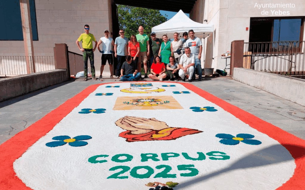 Las alfombras, que alcanzaron una longitud de 9 metros, se instalaron en dos puntos emblemáticos: la iglesia de Yebes y la iglesia de Valdeluz. Vecinos, vecinas y visitantes pudieron disfrutar de este arte efímero, tan arraigado en numerosas regiones de España. Estas creaciones, llenas de color y formas simbólicas, acompañaron tanto la celebración litúrgica como la tradicional procesión del Santísimo Sacramento.
