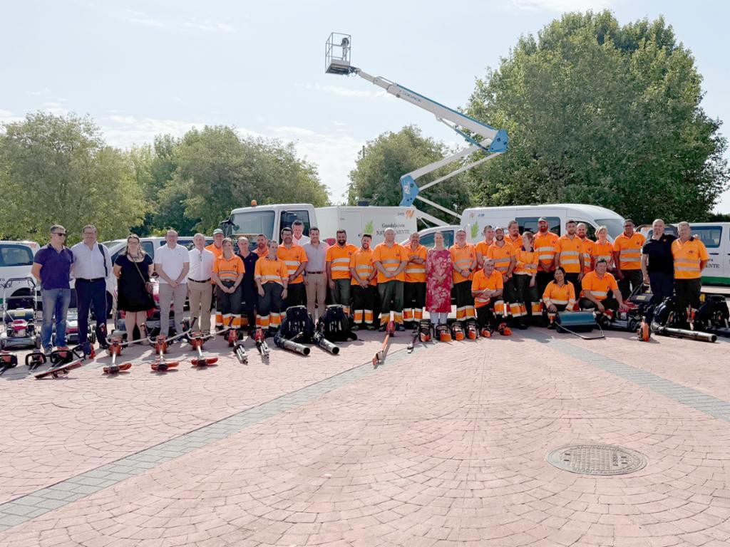 La alcaldesa de Guadalajara, Ana Guarinos, ha presentado esta mañana la nueva flota de vehículos y maquinaria destinada al mantenimiento y conservación de las zonas verdes de la ciudad, en el marco del nuevo contrato de Parques y Jardines. El acto ha contado con la presencia del concejal de Medio Ambiente, José Luis Alguacil; Javier Gamón, director de Servicios Urbanos de la empresa adjudicataria Agricultores de la Vega de Valencia; así como responsables técnicos del área y la plantilla del servicio.
