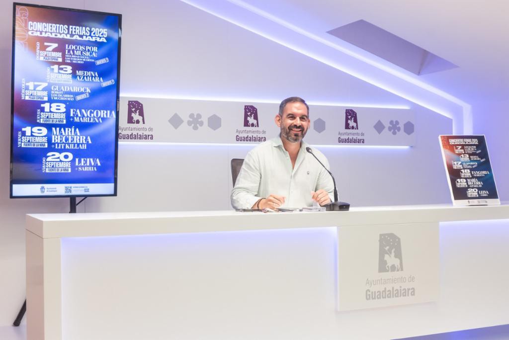 El concejal de Festejos, Santiago López Pomeda, ha anunciado en una reciente rueda de prensa los detalles sobre los conciertos y actuaciones musicales que formarán parte de las Ferias y Fiestas de Guadalajara 2025. “Guadalajara contará con artistas de primer nivel nacional e internacional, ofreciendo una variedad de estilos que sin duda harán vibrar a toda nuestra ciudad”, destacó el concejal.