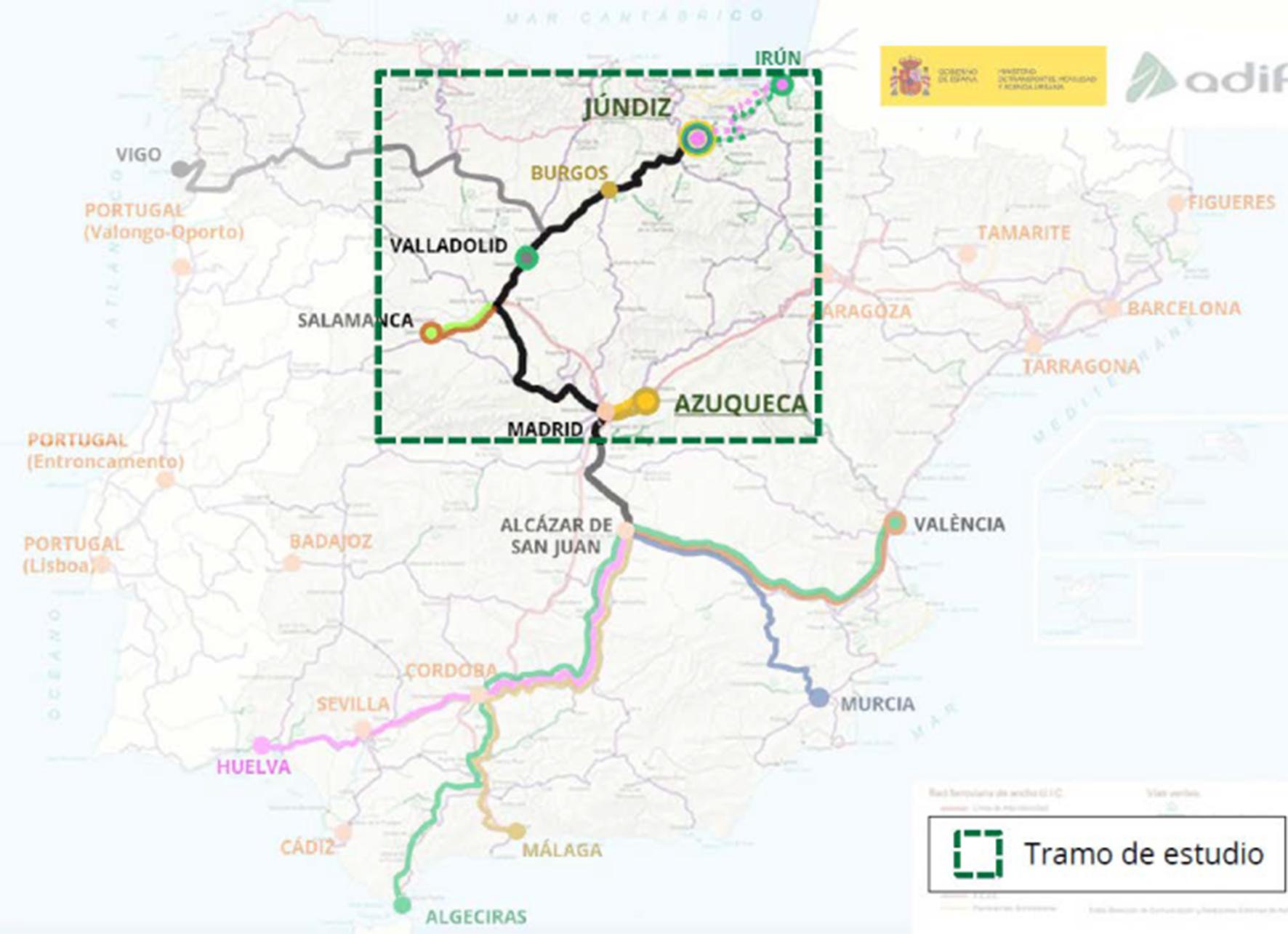 El tramo de autopista ferroviaria con inicio en Azuqueca discurrirá por 528 kilómetros íntegramente electrificados. En una primera fase, discurrirán 18 servicios de autopista ferroviaria cada semana, según las previsiones del Ministerio. El trazado ferroviario entre Azuqueca y Vitoria forma parte del Corredor Atlántico de la Red Transeuropea de Transporte y, según Transportes "es estratégico para el transporte ferroviario de mercancías dado que concentra un elevado número de circulaciones a la semana, al permitir la conexión del centro y sur peninsular con el norte de España y el resto de Europa". La actuación entre Azuqueca y Júndiz permitirá dar continuidad a los itinerarios hasta frontera francesa, hacia el Norte, y Algeciras-Alcázar de San Juan-Madrid por el Sur. También vertebrará la península de Oeste a Este al conectar Castilla y León y Levante, gracias al servicio ya en funcionamiento entre Madrid y Valencia.