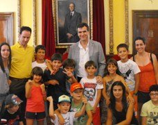 El Alcalde, Antonio Román, ha recibido en el Ayuntamiento de Guadalajara a los niños que están participando en el campamento urbano de Iriépal. De edades comprendidas entre los 5 y los 12 años, han tenido ocasión de conocer las instalaciones y dependencias municipales y de charlar con el Alcalde. El campamento urbano de Iriépal, organizado por el Ayuntamiento pedáneo, comenzó el pasado 24 junio y se prolongará hasta el 3 de agosto. Su horario es de 9 a 14 horas. Durante este tiempo, los niños que participan en él están realizando multitud de actividades lúdicas y educativas como talleres de lectura, de teatro o visitas al Zoo de Guadalajara o al Ayuntamiento. Próximamente visitarán también los monumentos de la capital.