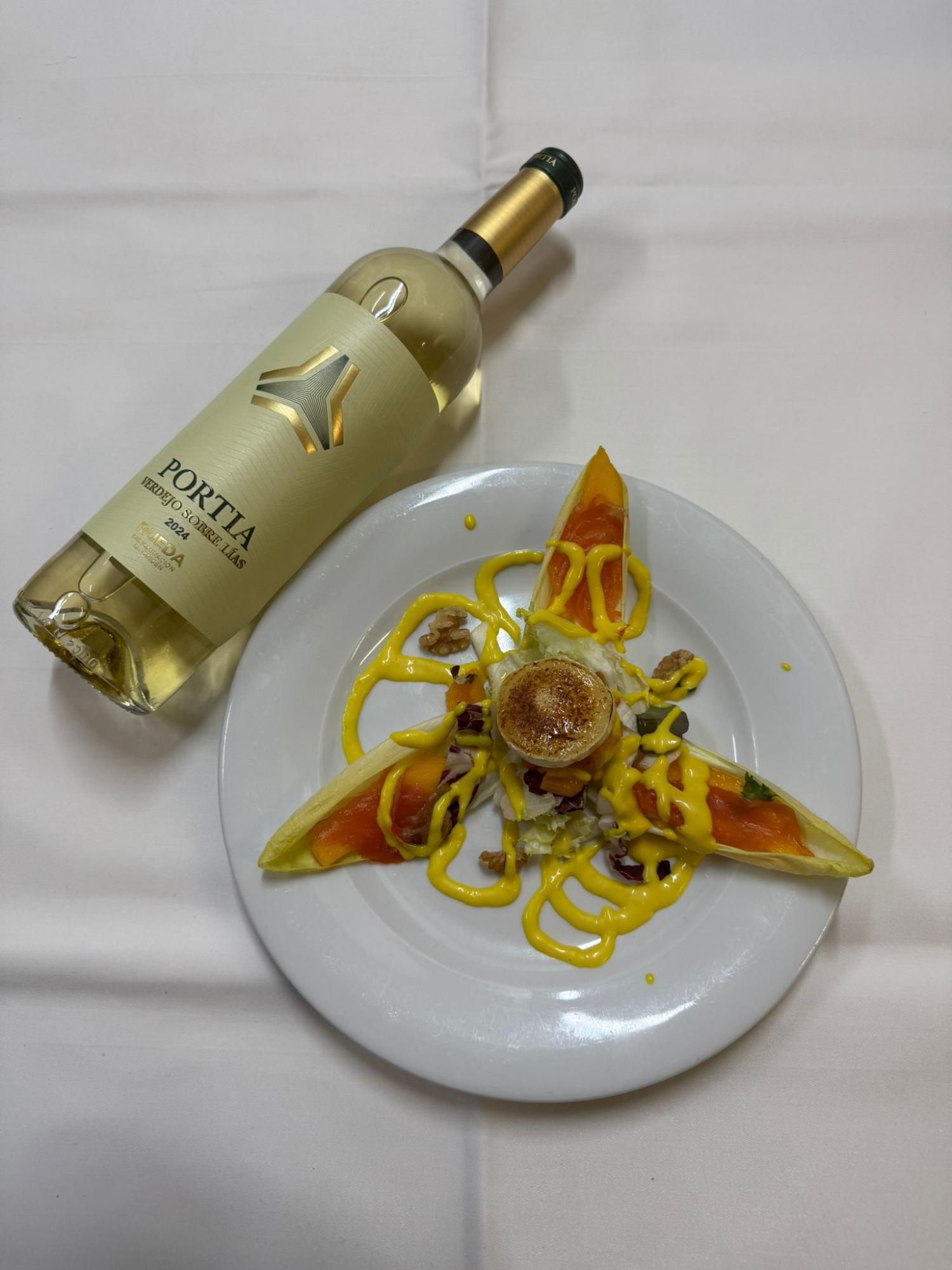 Se comenzó con un vino de la variedad de uva verdejo con la marca PORTIA sobre lías 2024 al cual acompañó una Ensalada de mango, salmón y queso de cabra. A continuación se continuó con un cava Faustino Ars Collection brut de macabeo y chardonnay armonizado con un Marmitako de atún de almadraba.