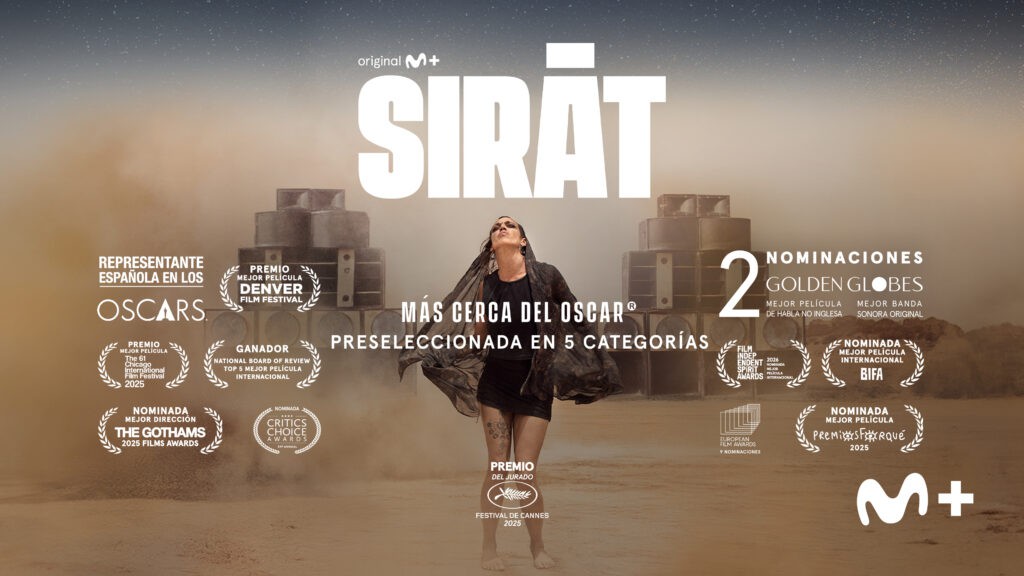 ‘Sirat’, la nueva obra del director Oliver Laxe, ha marcado un hito en el cine español al ser seleccionada por la Academia de Cine de Hollywood para competir por el Oscar® en cinco categorías. Las nominaciones incluyen Mejor película internacional, Mejor fotografía (Mauro Herce), Mejor música original (Kangding Ray), Mejor sonido (Laia Casanovas, Amanda Villavieja y Yasmina Praderas) y Mejor casting (Nadia Acimi y Luis Bértolo). Esta producción original de Movistar Plus+ continúa acumulando éxitos y reconocimientos en festivales de cine. Las nominaciones definitivas se anunciarán el próximo 22 de enero.