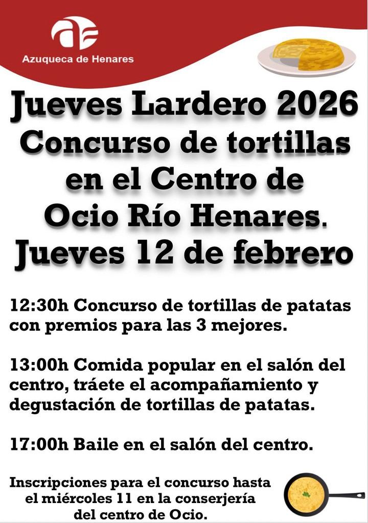El «día de la tortilla» marca el inicio del programa de actividades que se desarrollará durante el Carnaval en Azuqueca, incluyendo también las propuestas del sábado y el tradicional entierro de la sardina.