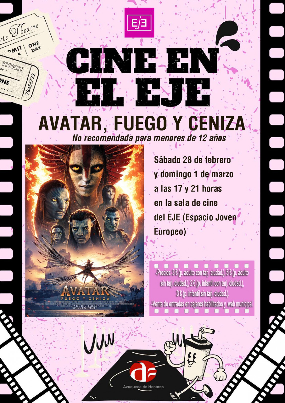Este fin de semana, el Espacio Joven Europeo (EJE) de Azuqueca de Henares se convertirá en el escenario de la proyección de “Avatar: Fuego y ceniza”, la tercera entrega de la exitosa saga dirigida por James Cameron. Las funciones están programadas para el sábado 28 de febrero y el domingo 1 de marzo, con dos pases diarios a las 17:00 y a las 21:00 horas.