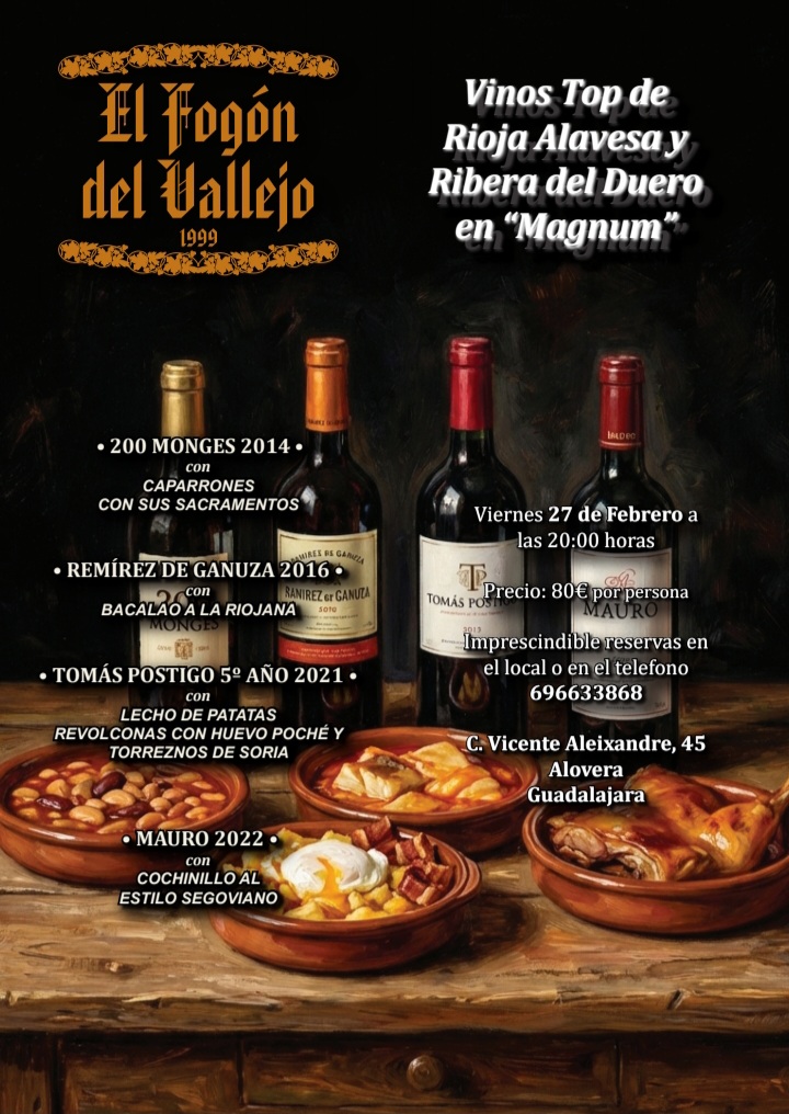 Los vinos elegidos han sido: 200 Monges 2014, Remírez de Ganuza 2017, Tomás Postigo 5º Año 2021 y Mauro 2022.