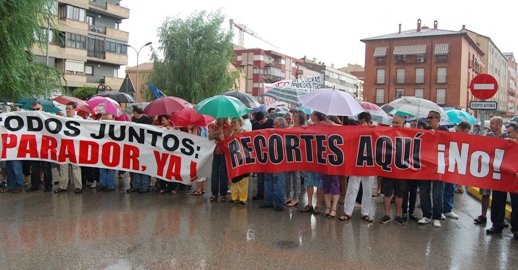 Sobre los recortes: Todos juntos, recortes aquí: NO. Stop. Comarca deprimida, recortes aquí: NO. Por la pervivencia y contra el hundimiento. Escuelas Sí, recortes NO. Urgencias, Sí, recortes, NO. Montes limpios y atendidos: SI, recortes de personal: No. Sra. Cospedal, Óiganos bien: Recortes aquí, No. No, no y no y mil veces NO. Sra. Cospedal, se lo exigimos desde aquí y con miles de firmas iremos hasta allí. En comarcas deprimidas, recortar es hundir.