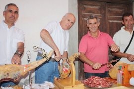 Los actos religiosos de viernes y sábado mantuvieron la solemnidad y devoción tradicionales, sacándolas a las calles de Quer. En la cena a la española de la noche de ayer hasta 640 seteros compartieron mesa y mantel. Consistió en jamón, tortilla, pincho moruno, bebida y helado de postre. Los propios ciudadanos colaboraron para que todo saliera a pedir de boca. “El año pasado ya la organizamos de la misma manera. Es más barata que otras versiones de comidas populares que además son menos participativas y más anónimas”, destaca Lourdes. Algo menos de público, por el frío, inusual para esta época del año que ha hecho en Quer este fin de semana, han tenido la fiesta de la espuma y la guerra de globos, otros dos clásicos de la fiesta setera.