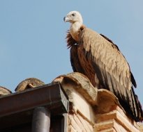 Un joven buitre leonado fue visto por primera vez volando, algo desubicado, sobre los cielos de la localidad yunquerana, en la tarde del pasado martes, 18 de septiembre, concretamente durante la celebración de uno de los encierros taurinos. El ave volaba a gran altura hasta que decidió planear sobre la plaza de toros de la localidad. Desde ese mismo momento se le perdió la pista, pero la sorpresa llegó cuando, debido a su desubicación, se posó en una de las vertientes del tejado del edificio del Ayuntamiento permaneciendo practicamente inmóvil hasta la mañana del jueves en la que decidió salir a cazar. Misión bastante fácil dada la proximidad de un corral de gallinas en donde solo tuvo que elegir la presa, acorralarla con sus grandes alas y posteriormente darse el festín. SIGUE